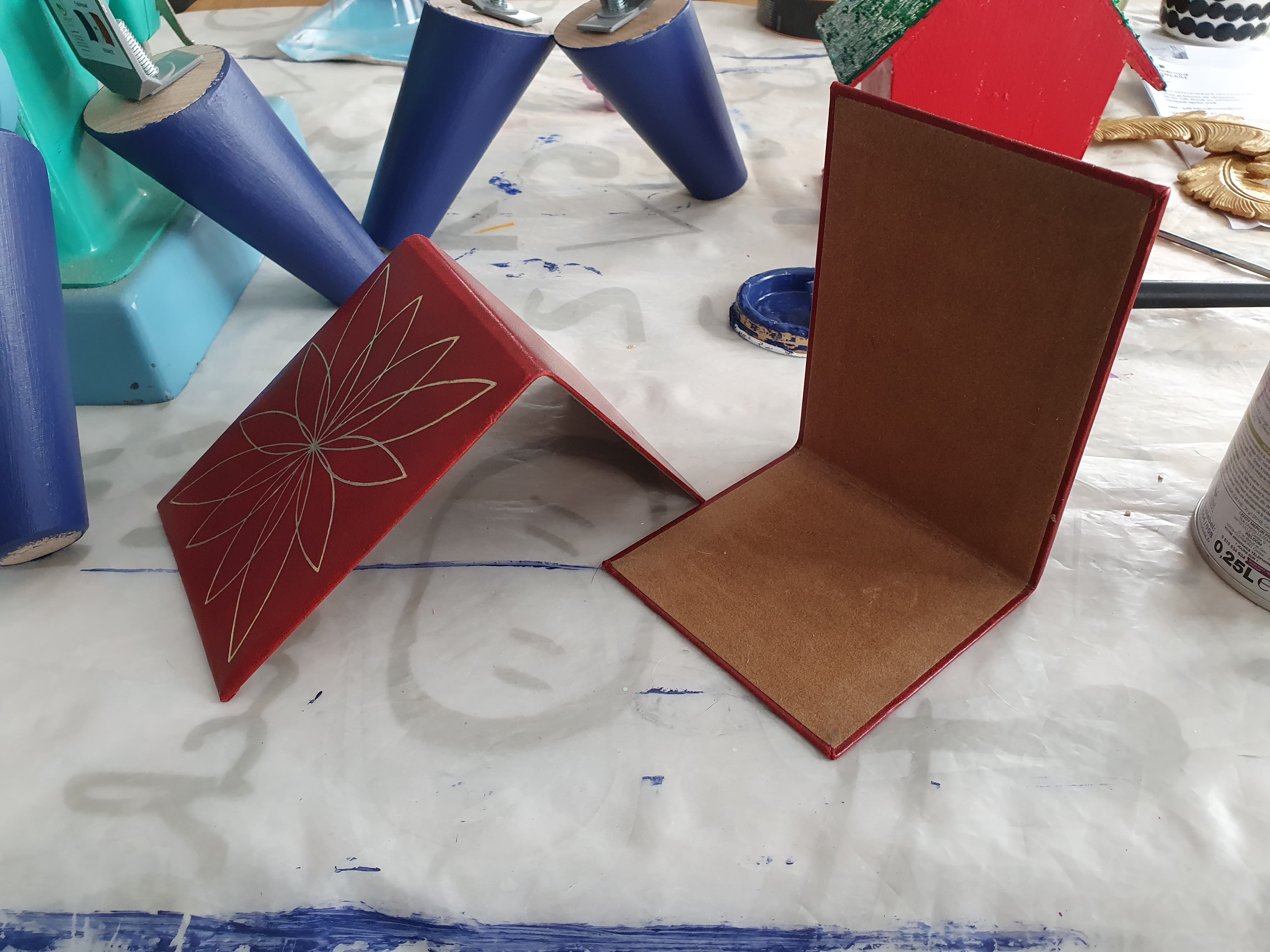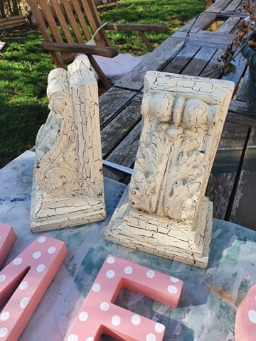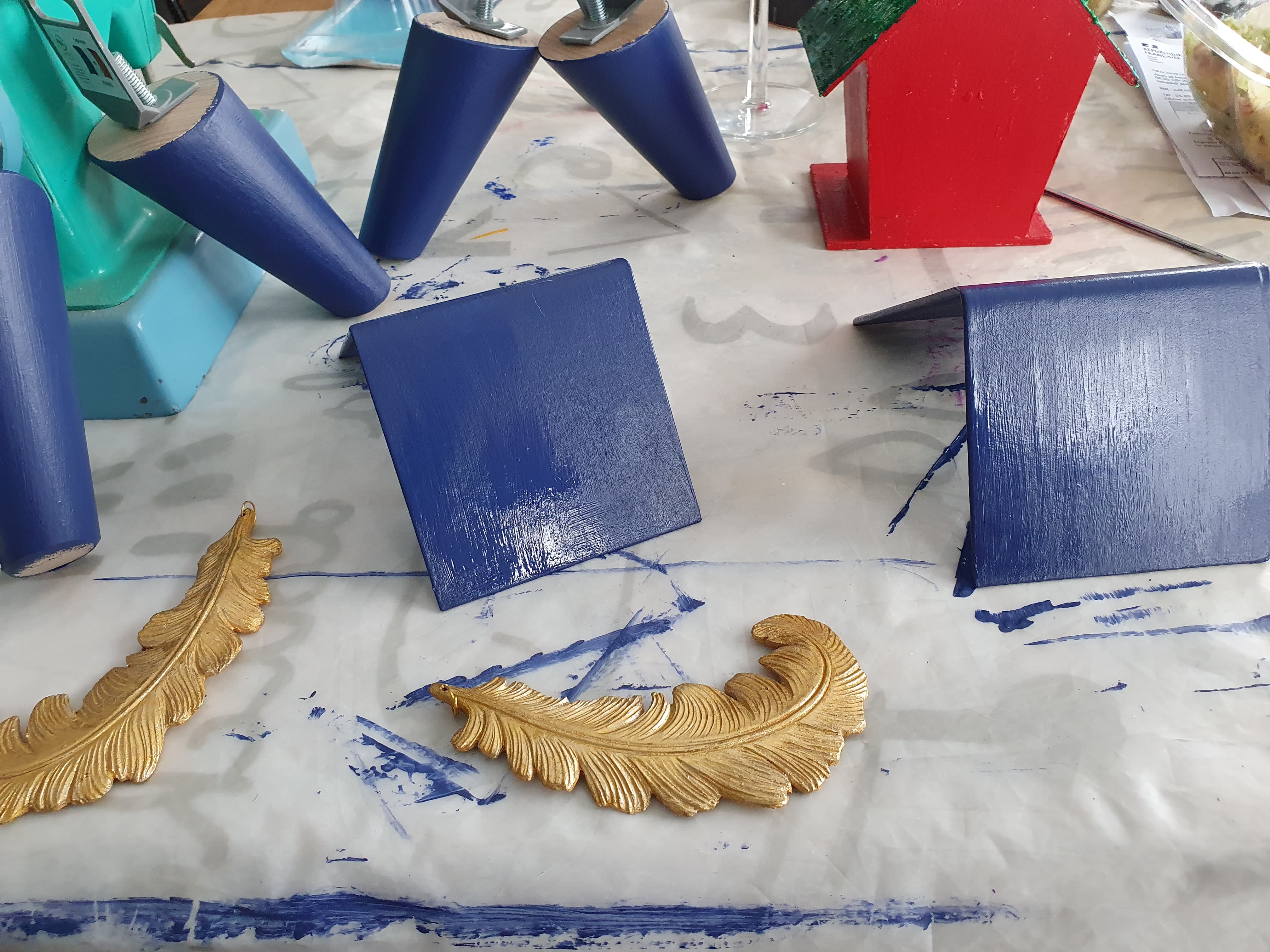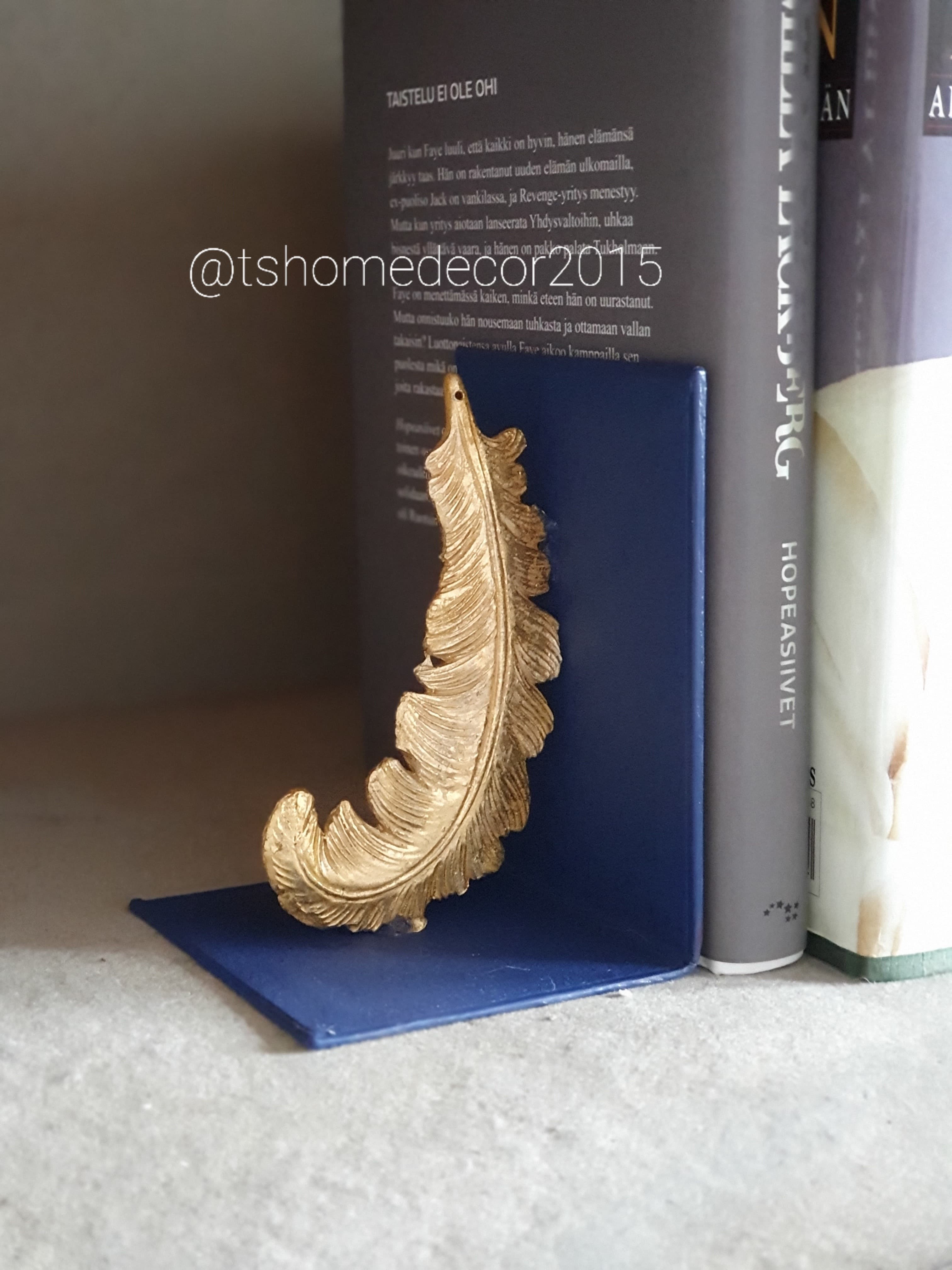 How to make unique book holders? I had these book holders. I painted them twice and let them dry before gluing the hard plastic feathers I had left overs from my previous projects. I let them dry 24 hours and they are ready!